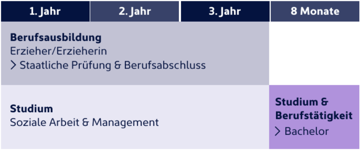 Das Studium findet parallel zur fachschulischen Ausbildung statt. Die abschließende Bachelorarbeit wird nach dem Ausbildungsende berufsbegleitend geschrieben.